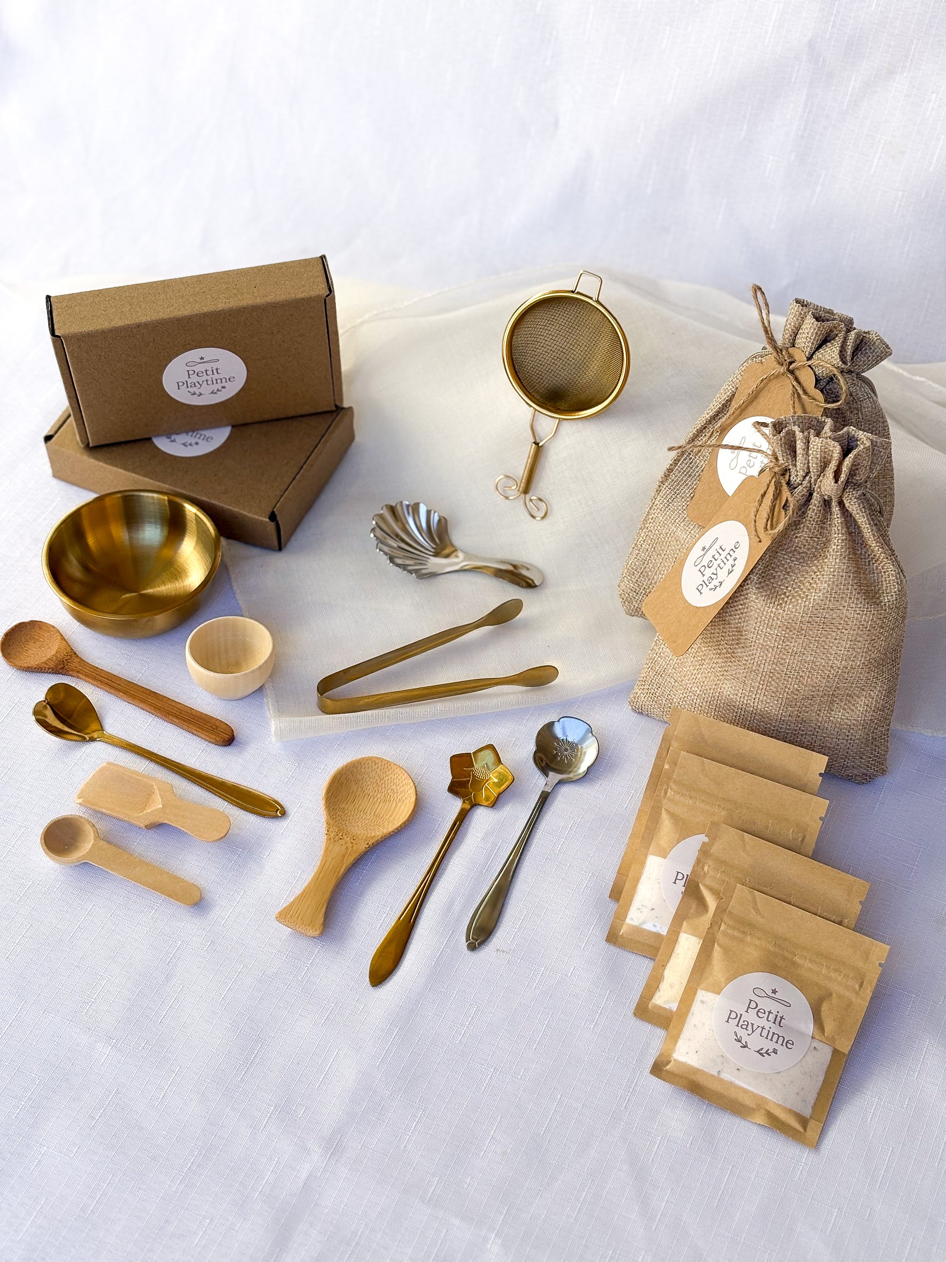 The Starlight Strainer and Seashore Stirrer make measuring, mixing, and sensory play feel intentional and magical. Little explorers can experiment, explore textures, and enjoy each tactile experience at their own pace.