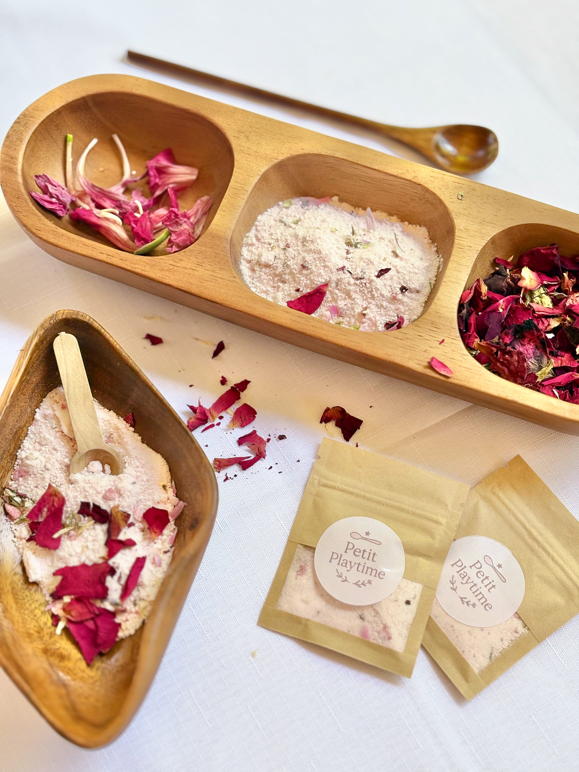Infused with real dried seasonal flowers and herbs, each blend carries a touch of nature, turning simple play into a sensory adventure.
