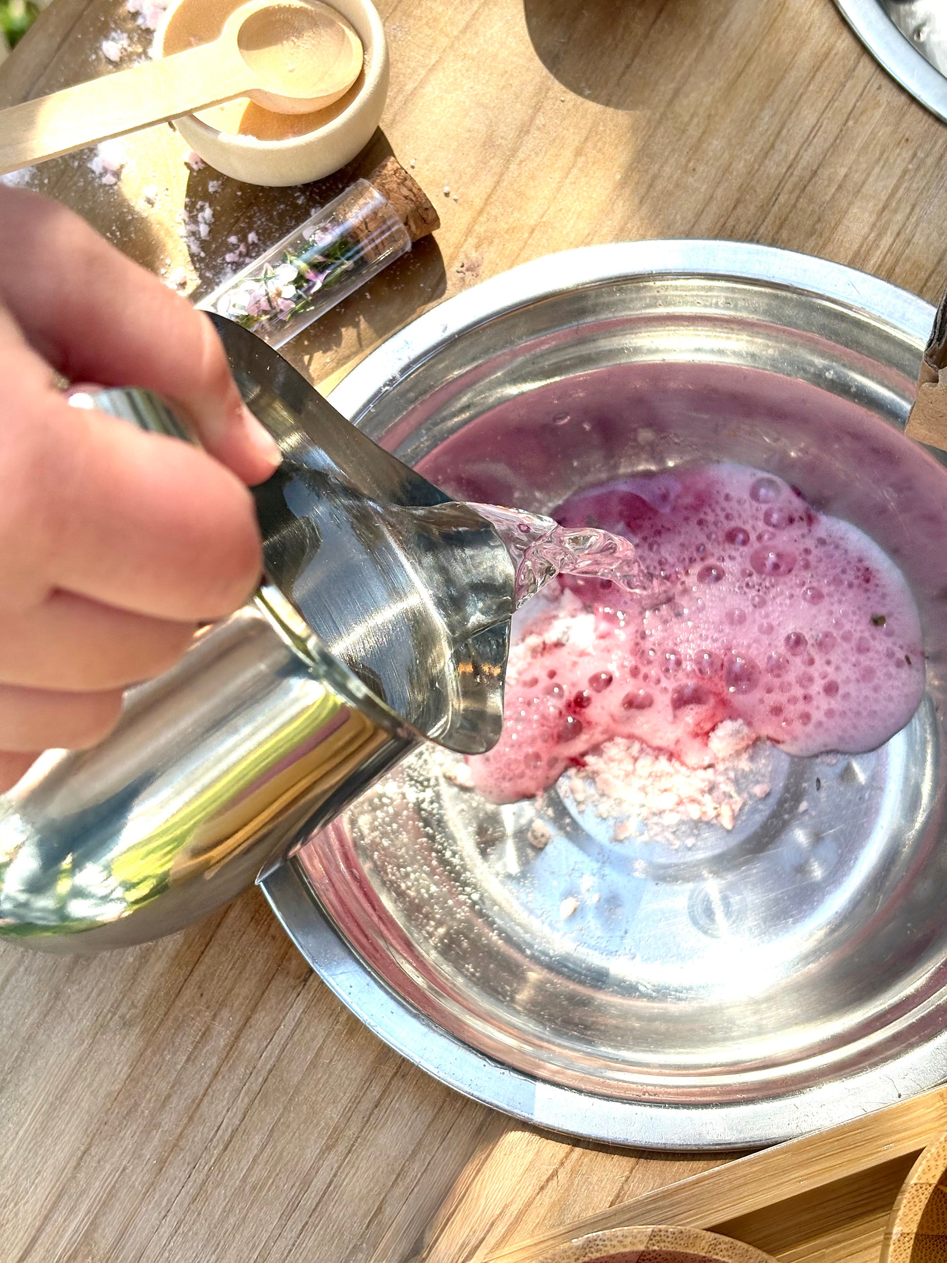 Use a little spoonful at a time and add water to watch gentle fizzing bring colours to life — or add vinegar for an even more exciting, bubbling reaction.