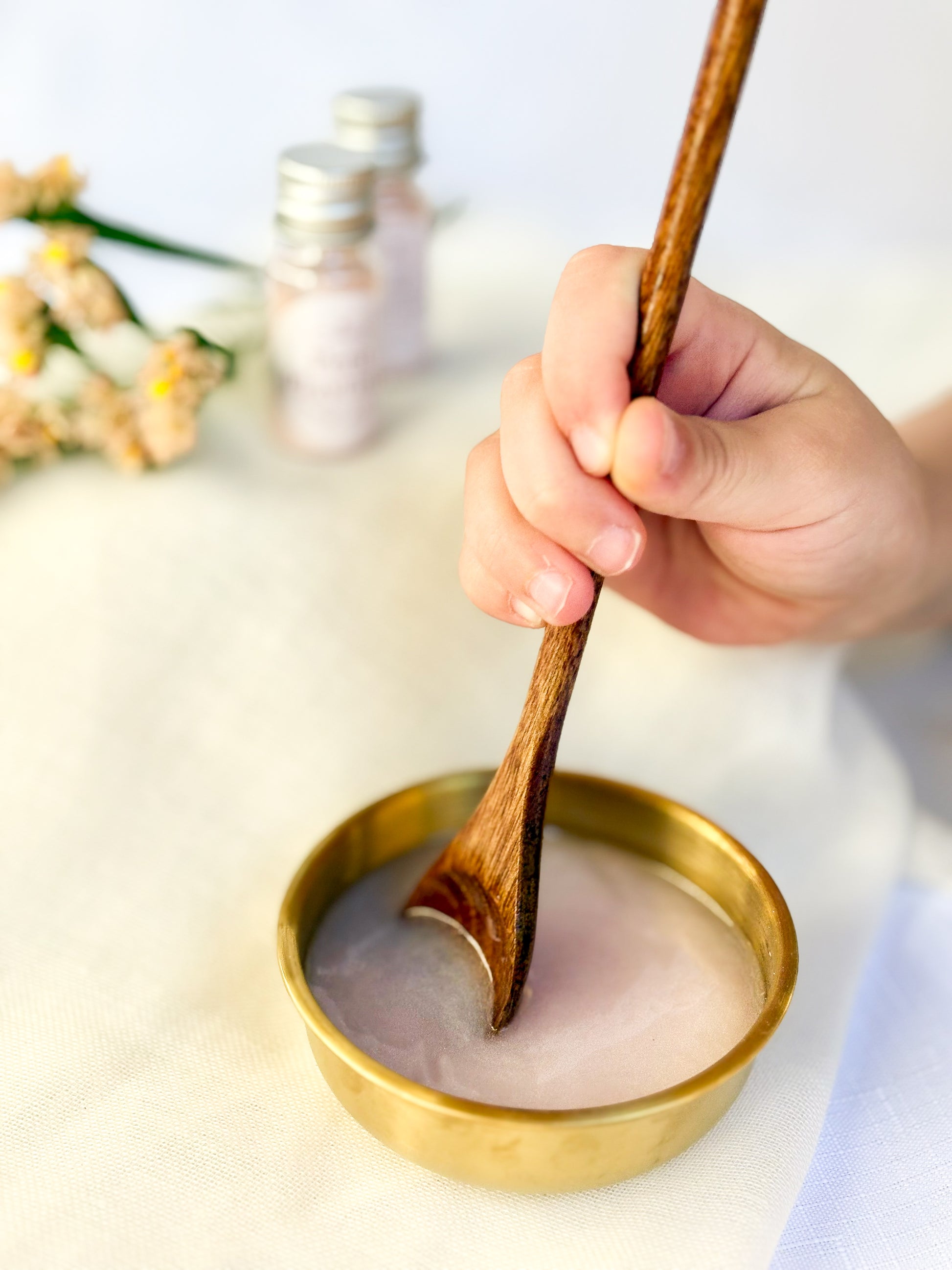 Just a tiny spoonful of Moonbeam Sensory Powder transforms ordinary water into a mesmerizing, pearlescent swirl.